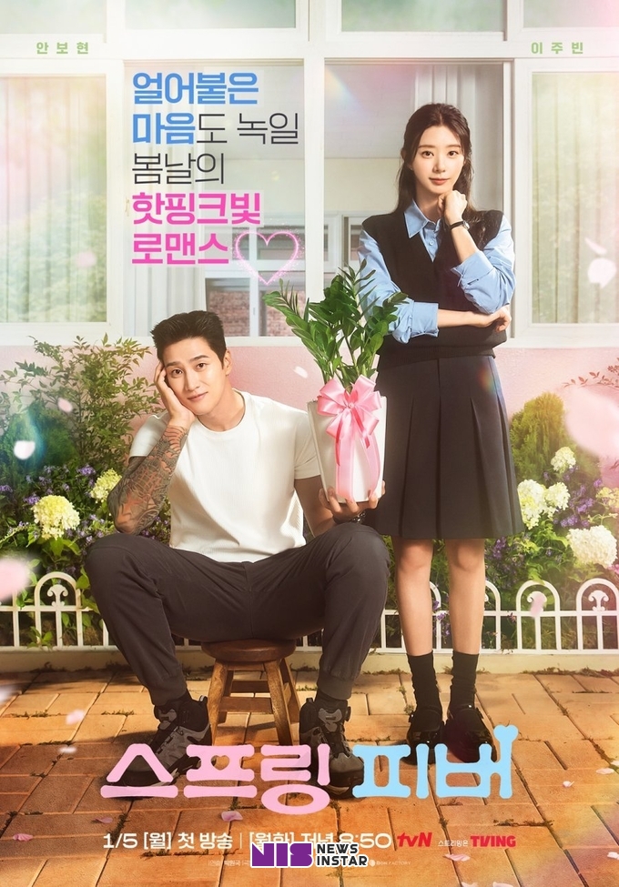 2026년 1월 5일(월) 첫 방송 예정인 tvN 새 월화드라마 ‘스프링 피버’(연출 박원국 /극본 김아정 /기획 CJ ENM STUDIOS /제작 본팩토리)는 찬바람 쌩쌩부는 교사 윤봄(이주빈 분)과 불타는 심장을 가진 남자 선재규(안보현 분)의 얼어붙은 마음도 녹일 봄날의 핫!핑크빛 로맨스다.