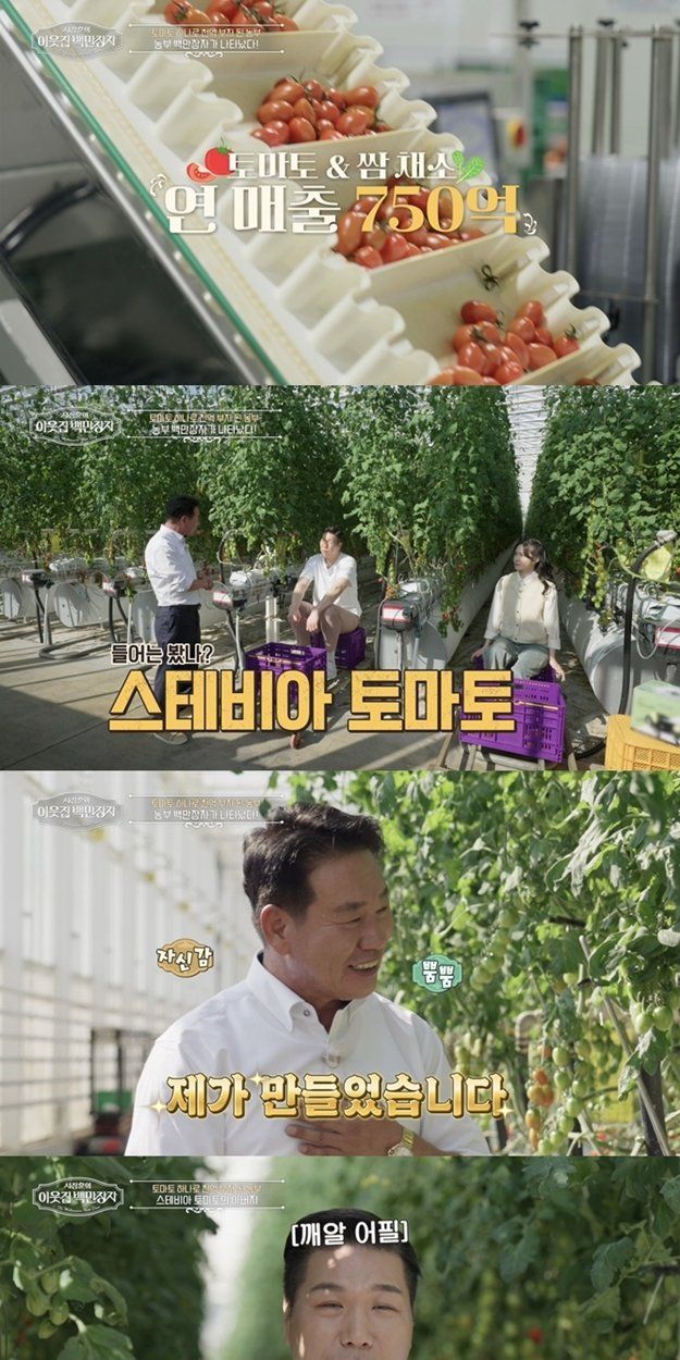 이런 가운데 ‘이웃집 백만장자’에서는 김호연이 탄생시킨 또 하나의 히트작이 공개된다. 토마토 시장의 판도를 뒤바꾼 비밀 무기, 바로 ‘스테비아 토마토’가 그 주인공이다. 스테비아 토마토는 일반 토마토보다 훨씬 강한 단맛을 자랑하며, 출시와 동시에 소비자들의 미각을 뒤흔든 인기 품목이다. 김호연은 “버린 토마토만 8억 원어치였다”고 회상하며, 처절한 실패를 딛고 개발에 성공한 과정을 생생하게 털어놓는다. 이를 들은 서장훈은 “1kg짜리를 하루 한 통씩 먹었다”며 스테비아 토마토의 ‘찐 팬’임을 스스로 인증한다. 이어 “회장님 부자 되시는데 제가 일조했다”며 특유의 너스레를 떨어 웃음을 자아낸다.