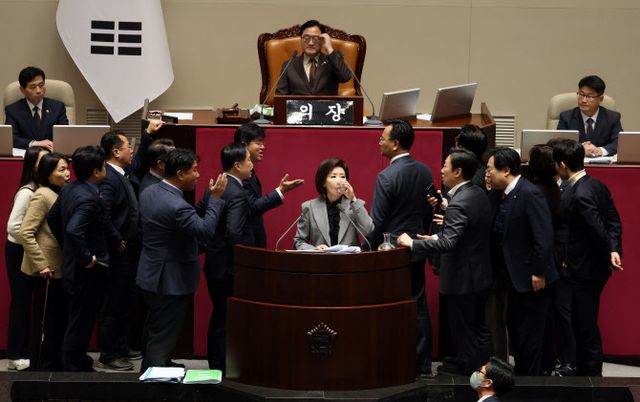 10일 정치권에 따르면 전날(9일) 국회 본회의에서는 여야 충돌로 필리버스터가 중단되는 초유의 상황이 벌어졌다. 앞서 국민의힘은 민주당이 추진하는 내란전담재판부 설치 및 법왜곡죄 신설, 필리버스터 중단 요건 완화 법안(국회법 개정안) 등을 저지하기 위한 필리버스터를 예고했다. 과반 의석을 가진 민주당을 저지할 방법이 없자 비쟁점 법안에 대해서도 모두 필리버스터를 실시, 민주당의 법안 처리를 최대한 지연시키는 전략을 짰다.