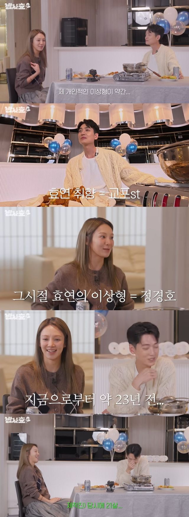 공개된 영상에서 효연은 정경호가 출연했던 과거 드라마 ‘미안하다 사랑한다’를 언급하며 “내 이상형이 약간 교포 느낌 나는 스타일이다. 그런데 오빠를 봤을 때 교포 느낌도 나고 아이돌 분위기도 있어서 놀랐다”라고 회상했다.