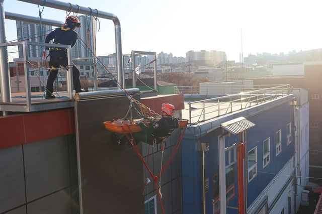 보강된 시설에서 진행된 이날 훈련은 ▲로프를 활용한 수직·수평 구조 ▲협소구간 인명검색 및 구조 절차 ▲구조장비 운용 숙달 등 실전 중심의 프로그램으로 진행됐으며 대원들은 실제 상황을 가정한 훈련을 통해 대응역량을 점검했다.