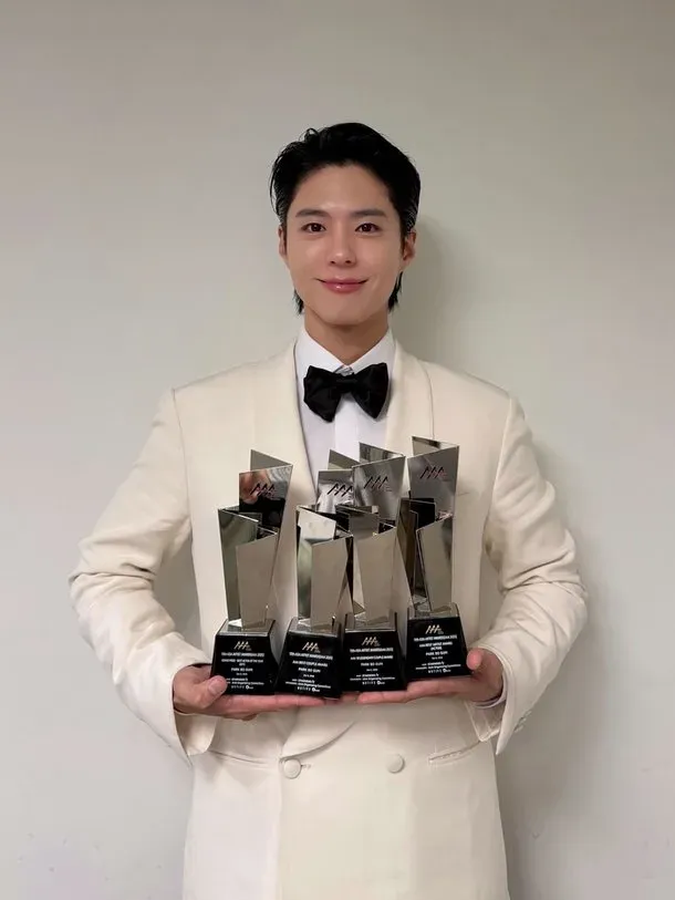 박보검은 지난 6일 대만 가오슝 내셔널 스타디움에서 개최된 '2025 아시아 아티스트 어워즈(AAA)'에서 5개 부문을 석권하는 기염을 토하며 화려한 수상 행진을 펼쳤습니다. 아시아 셀러브리티상을 비롯해 베스트 커플상, 베스트 아티스트상, 10주년 레전더리 커플상, 그리고 최고 영예인 올해의 남우주연상까지 총 5개 트로피를 품에 안았습니다.