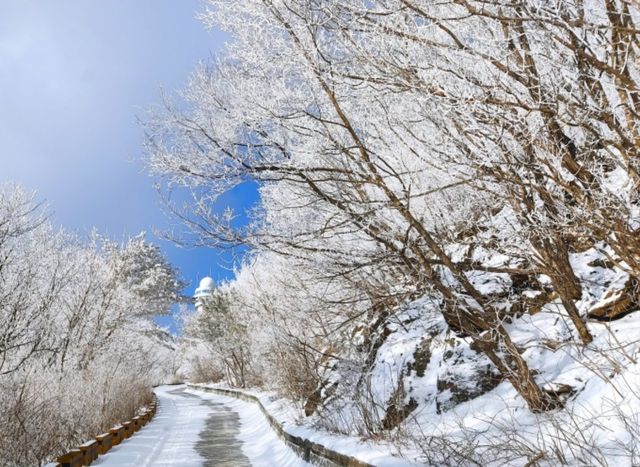 겨울 산이 가장 겨울다워지는 순간은 눈이 내린 다음 날 새벽, 나뭇가지마다 상고대가 살포시 올라앉을 때다. 바람에 실린 물기와 차가운 기온이 겹치며 만들어내는 그 하얀 결은 사진으로는 다 담기지 않는 결고운 풍경을 남기고, 한 걸음씩 오를 때마다 발밑에서 뽀드득 울리는 소리와 함께 산행이 단순한 걷기가 아니라 계절이 건네는 선물 같은 시간으로 바뀐다.