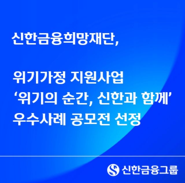 신한금융희망재단, 위기가정 지원사업 '위기의 순간, 신한과 함께' 우수사례 공모전 선정. / 신한금융희망재단 제공