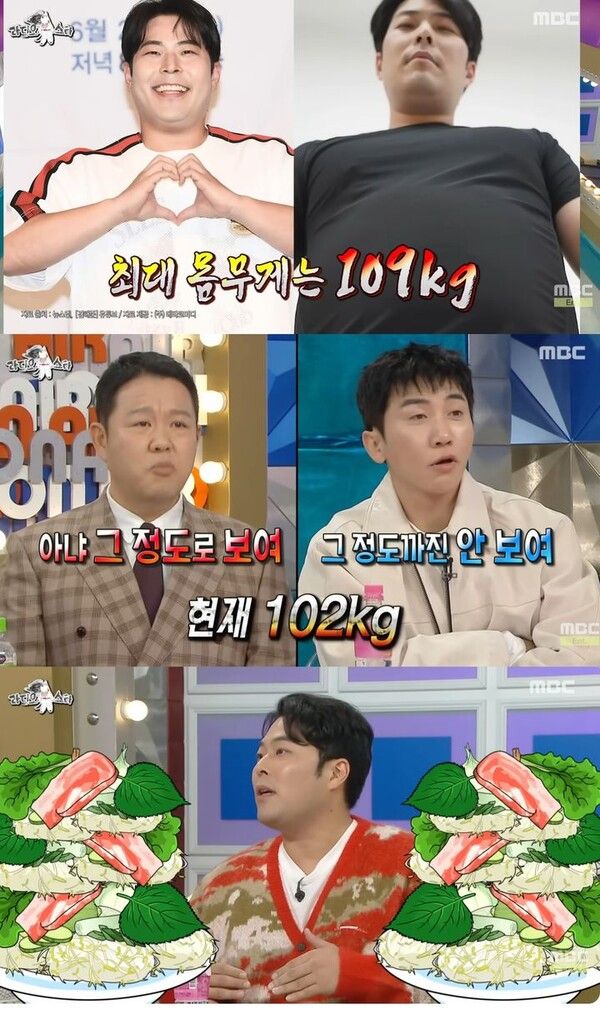 이어 "지금은 100㎏이 넘는다. 지금은 102㎏ 정도 된다. 최고 많이 나갔을 때가 109㎏까지 갔다"고 밝혔다.
