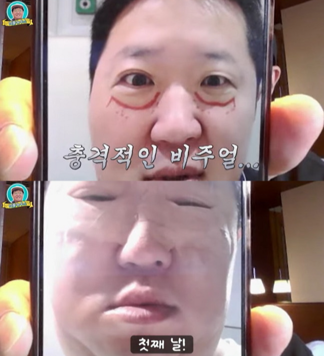 [스포츠동아|이정연 기자] 정형돈이 눈 밑 지방 재배치 수술 후기를 솔직하게 털어놓으며 수술 직후 퉁퉁 부은 사진까지 공개했다.