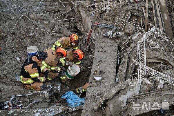 중량 84.7t을 들어올릴 수 있는 대형 크레인 2대까지 현장에 배치되면서 콘크리트 더미를 나르고 있지만 잔해가 많은 탓에 좀처럼 구조 속도가 나지 않고 있다.