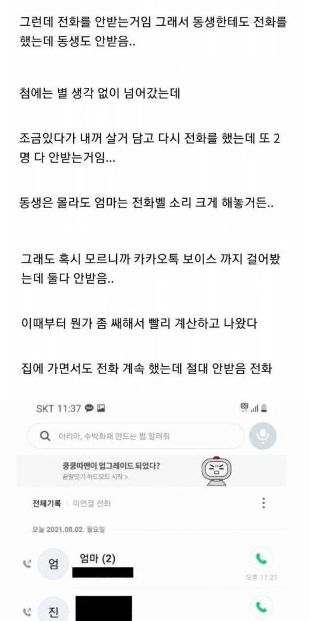 집에서 엄마와 동생이 사라졌던 썰.jpg