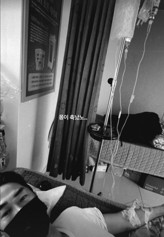 공개된 사진에는 병원 침대에 누워 링거 주사를 맞고 있는 그의 모습이 담겨 눈길을 끌었다.