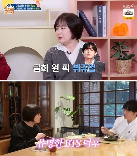 KBS 2TV ‘옥탑방의 문제아들’ 11일 오후 방송에서 게스트로 등장한 이금희는 송은이의 “지금도 이상형이 뷔예요?”라는 질문에 “늘 물어보셔도 뷔님이예요”라고 답했다. 쑥스럽지만 단호한 고백이었다.