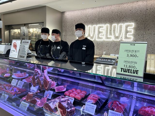 10일 오후 하우스오브신세계 청담의 식품관 트웰브의 정육코너에 다가가자 직원이 다가와 눈인사를 건넸다. 가지런하게 정돈된 각종 고기 앞에서 “초등학교 2학년 딸이 고기 씹는 걸 싫어한다”며 망설이자, 축산업 경력 12년 차의 ‘베테랑’ 전승표 사원이 조언을 건넸다.