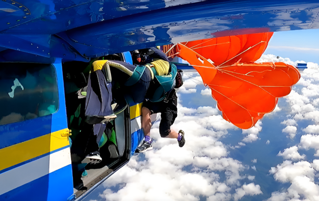 스카이다이빙 도중 낙하산이 비행기 꼬리에 걸려 다이버가 4500m 상공에 매달리는 아찔한 사고가 발생했다. 스카이다이버는 비상용 칼로 낙하산 줄을 직접 끊어내고 탈출했다.