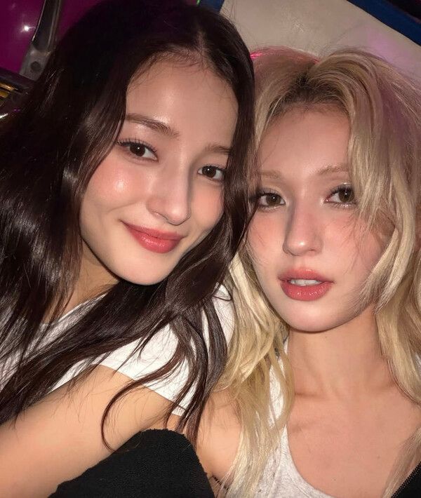 사진 속 전소미 낸시는 얼굴을 맞대고 있다.
