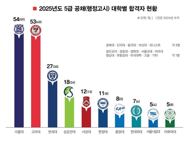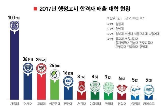 2~4위 연세대, 고려대, 성균관대 합쳐도 97명으로, 서울대가 우위였던 리즈시절..