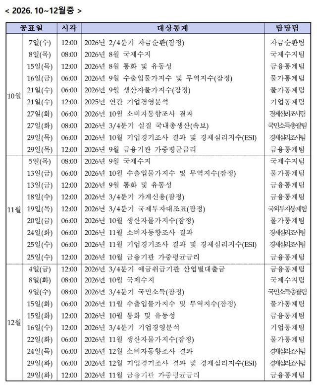 한은이 이날 발표한 ‘2026년 중 경제통계1·2국 작성 통계 공표 일정’이 따르면 이달 말 차주별 가계부채 통계를 신규 편제하면서 신규 통계에 대한 자세한 내용을 발표하고, 내년부터는 분기별 통계가 제공될 예정이다.