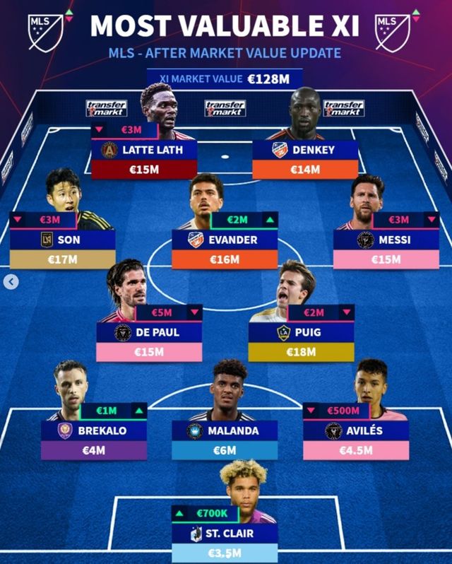 미국메이저리그사커(MLS) 이번 시즌도 종료됐고, 대대적인 선수 시장가치 업데이트가 진행됐다. 손흥민은 2,000만 유로(345억)에서 1,700만 유로(290억)로 소폭 하락했다.