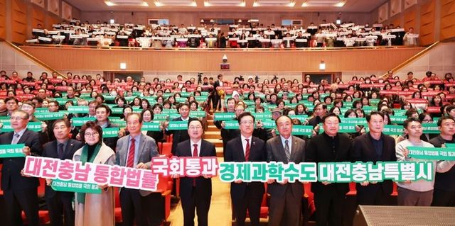 [파이낸셜경제=김영란 기자] 대전시는 12일 시청 대강당에서 대전광역시의회, 대전충남 행정통합 민관협의체(이하 민관협)와 공동으로 “대전충남 행정통합 설명회 및 시민 한마음 촉구대회”를 개최하고, 대전충남 행정통합 특별법안의 조속한 국회 심의․의결을 촉구했다.