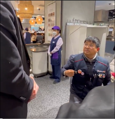 12일 X(옛 트위터) 등 소셜미디어에는 롯데백화점 잠실점 보안직원이 식당에 있는 이김춘택 전국금속노동조합 거제통영고성조선하청지회 사무장에게 노조 조끼를 벗어달라고 요구해 실랑이가 이는 장면을 담은 영상이 확산됐다. 해당 사건은 지난 10일 발생했다.