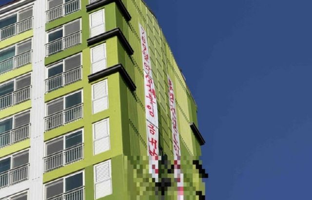 이들은 이날 농성을 벌인 아파트뿐만 아니라 반곡동 지역 아파트 여러 곳에서 외벽 도색 작업을 해온 작업자들로 체불임금은 약 10억원으로 알려졌다. 이들은 ‘7·8·9월 악성 체불임금 지급하라’, ‘X건설 노임 20억 지급하라’ 등의 문구가 적힌 현수막을 외벽에 건 채 농성을 벌였다.