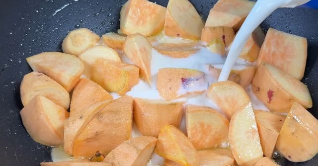 이 조리법이 맛있는 이유는 고구마의 전분과 우유의 유당이 함께 열을 받으면서 자연스러운 단맛을 강화하기 때문이다. 고구마는 열을 가하면 전분이 당으로 변하는데, 여기에 우유의 부드러운 감칠맛이 더해져 설탕을 넣지 않아도 충분히 달콤해진다. 졸아드는 과정에서 우유가 고구마 틈 사이로 깊이 스며들어 촉촉한 질감을 유지하고, 버터는 풍미를 잡아주며 전체 맛을 안정시킨다. 디저트처럼 부드럽지만 기름지지 않고, 부담 없이 숟가락으로 떠먹는 고구마 크림 조림이 되는 셈이다.