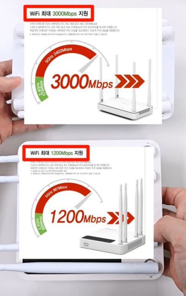 와이파이 속도를 최대 1기가 넘게 지원한다고 설명돼 있는 공유기들의 모습. / 유튜브 '1분미만'