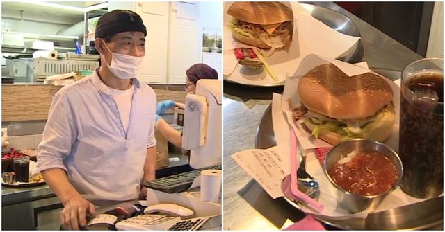 재개점 가게에서 판매하는 '돈 워리 버거'. / 유튜브 채널 '딜라이브 다큐'