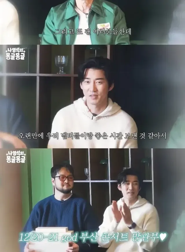 god는 지난 12일 유튜브 채널 ‘채널십오야’에서 공개된 ‘나영석의 몽글몽글’을 통해 데뷔 초부터 현재까지의 서사를 되짚었다. 나영석 PD는 20여 년 이상 활동한 아티스트로서 god가 지닌 의미를 강조하며, 이들이 왜 시대를 초월하는 아이콘으로 자리매김했는지 조명했다. 멤버들은 대표곡 '어머님께'를 상징하는 짜장면을 함께하며 솔직한 대화를 나눴다.