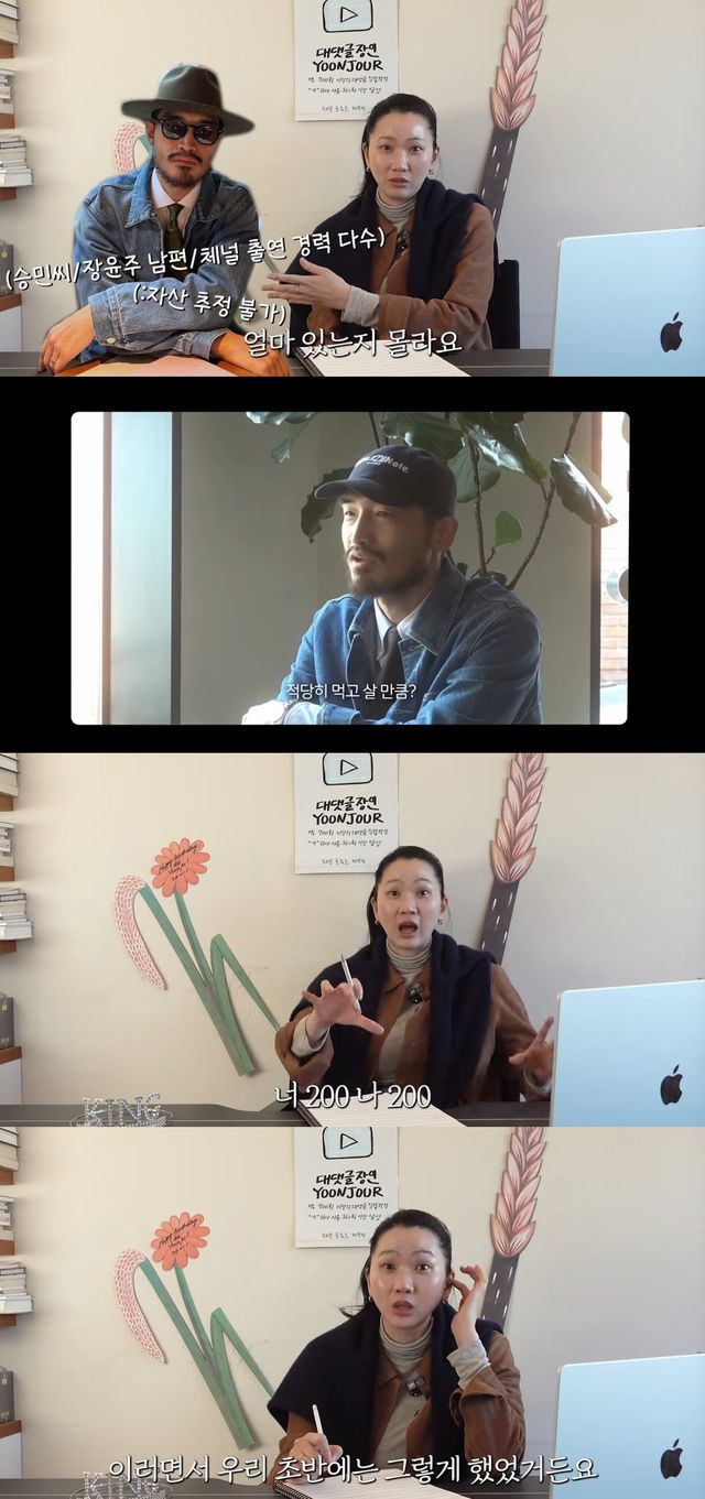 장윤주는 "처음 결혼했을 땐 한 달에 너 200, 나 200해서 총 400으로 가계부를 써보자고 했다. 이렇게 1년을 생활했다. 그런데 아이가 태어나고 자연스럽게 그렇게 안 하고 있다"며 부부의 근황을 밝혔다.
