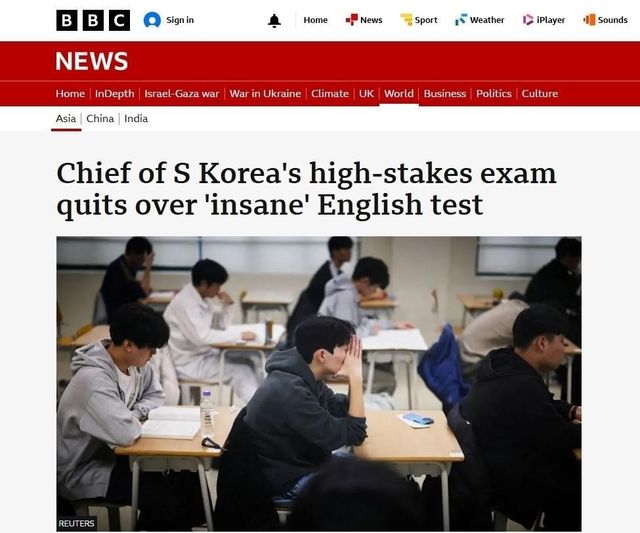 영국 공영방송 BBC가 한국 수능 영어 난이도를 집중 조명하며 "어렵기로 악명 높다(notoriously difficult)"고 말했다.