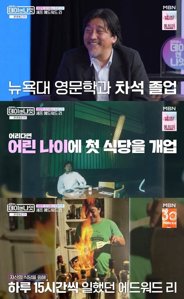 13일 방송된 MBN '김주하의 데이앤나잇'에는 셰프 에드워드 리가 게스트로 출연해 김주하와 문세윤, 조째즈를 만났다.