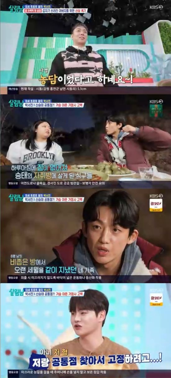 신승태는 과거 원룸에서 자취하던 대학생 시절 아버지의 보증으로 인해 집이 힘들었던 사연을 털어놨다. 가족들이 자취방에서 함께 살게 됐다고.