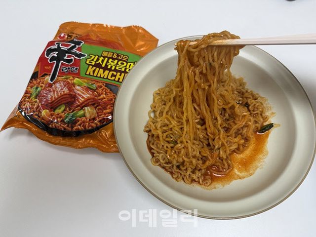 농심(004370)의 ‘신라면 김치볶음면’은 기존 신라면 브랜드를 활용해 개발한 국물 없는 볶음형 라면이다. 지난 11월 이마트에서 4입 기준 4880원에 한정 출시됐고, 농심은 이 제품을 내년 글로벌 시장의 주력 제품으로 육성할 계획이다. 국내 소비자 반응을 테스트한 뒤 본격적인 해외 공략에 나서는 셈이다. 특히 2026년은 농심의 간판인 신라면이 출시 40주년을 맞는 해다.