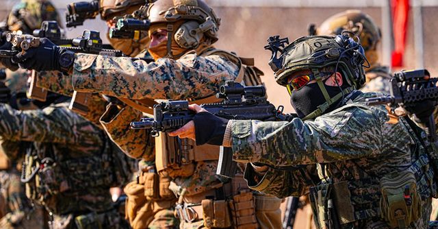해병대사령부는 파주와 동두천 일대 훈련장에서 특수수색대대와 미 해병대 III-MEF 수색부대가 한미 해병대 KMEP 연합수색훈련을 했다. 사진에서 한미 해병대 수색부대 장병들이 권총과 소총을 활용한 실사격훈련을 하고 있다. / 뉴스1