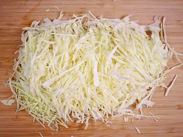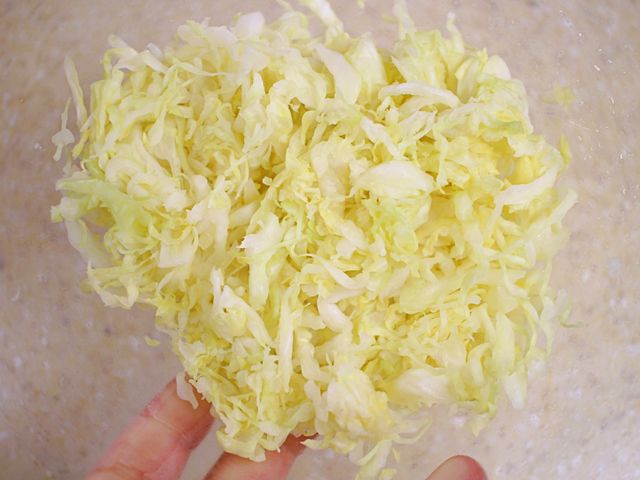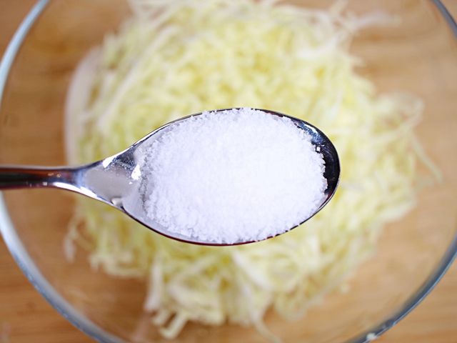 채를 썬 양배추에 소금 1큰술 넣어서 30분정도 절여주세요.