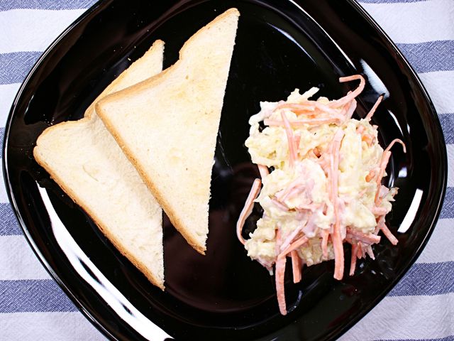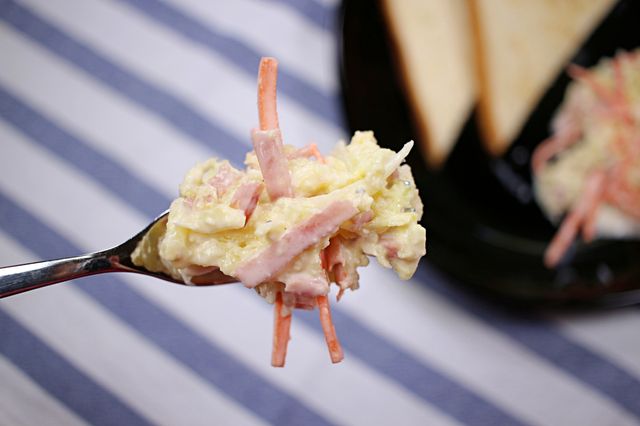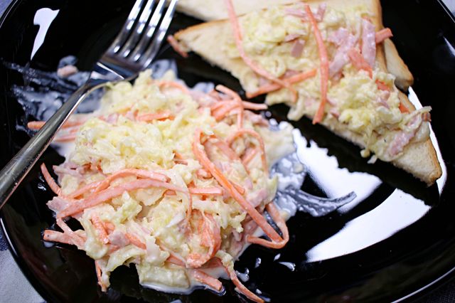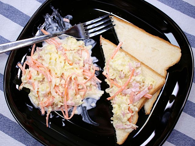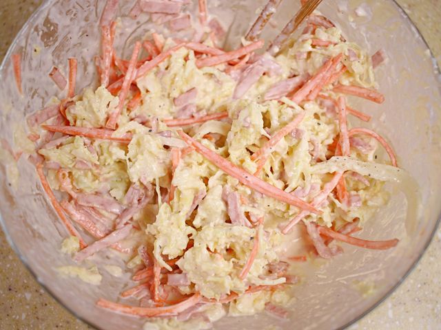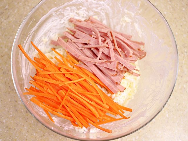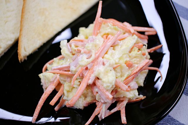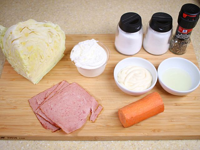 재료는 양배추, 슬라이스햄, 당근, 생크림,