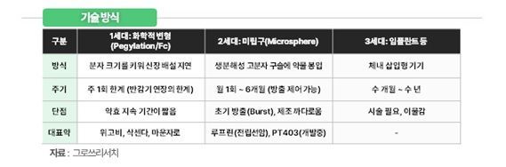 한 연구원은 "빅파마 입장에서도 장기 지속형 제형은 오리지널 약물의 특허 만료 이후 시장 지배력을 연장할 수 있는 핵심 수명주기관리(LCM) 전략"이라며 "특허 회피 수단으로도 활용 가능하다"고 평가했다.