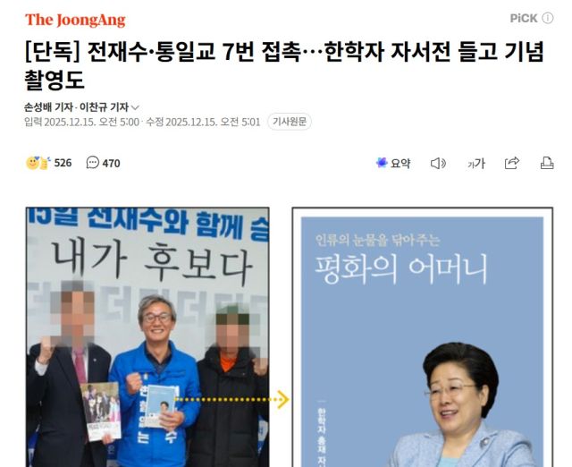 윤영호 전 통일교 세계본부장으로부터 현안 청탁 및 금품 수수 의혹 당사자로 지목된 전재수 더불어민주당 의원(전 해양수산부 장관)이 한학자 통일교 총재의 책을 들고 찍은 사진 등이 언론에 의해 공개됐다.