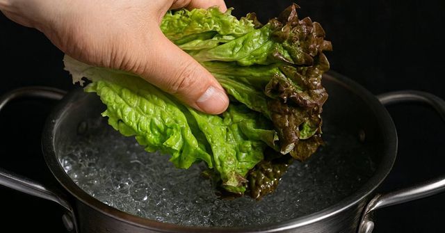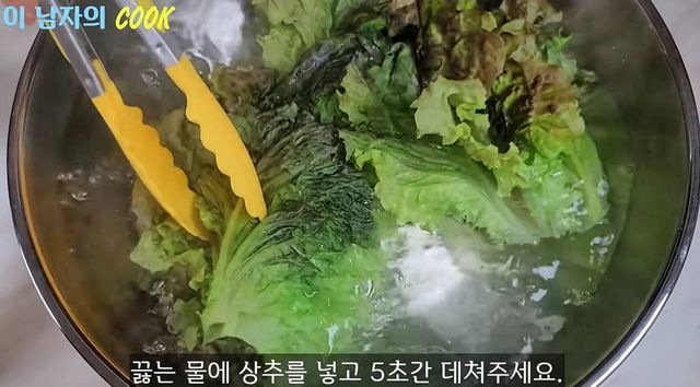 5초간 끓는 물에 상추 데치기 / 유튜브 '이 남자의 cook'