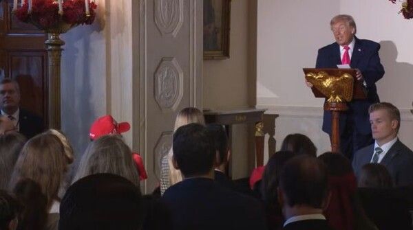 도널드 트럼프 미국 대통령이 크리스마스 리셉션 연설에서 주말 사이 일어난 총격 사건에 대해 애도한 뒤 뜬금 없이 독사에 대한 얘기를 하는 등 장황한 즉흥 연설을 수십분 간 늘어놨다.