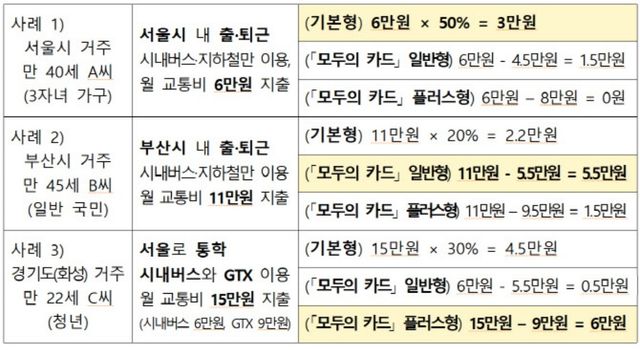 '모두의 카드' 환급액 예시 / 국토교통부 제공
