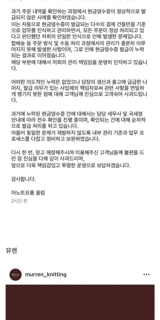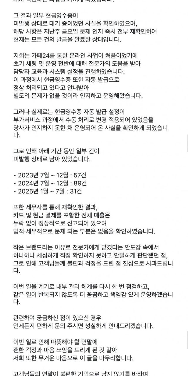 현재 맘카페 난리난 현금영수증 누락한 아기옷 쇼핑몰 사과문