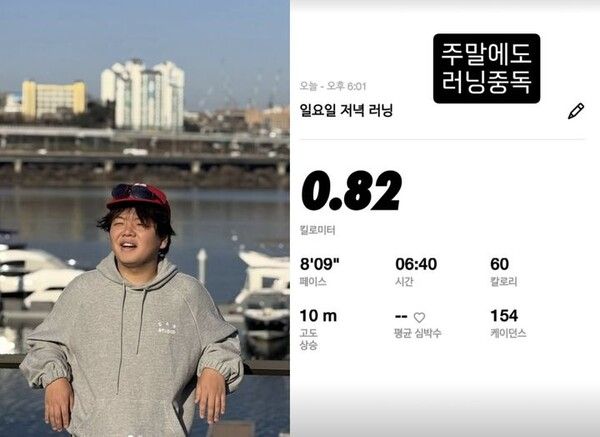 그는 사흘 전인 12일에도 "노력은 배신하지 않는다. 겨울에도 꾸준한 러닝. 언젠가 8분대 진입하는 그날까지"라고 적었다.