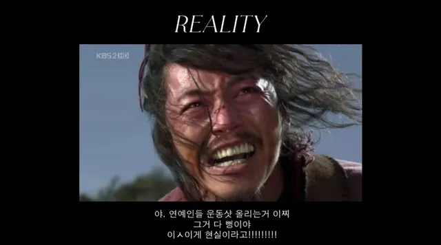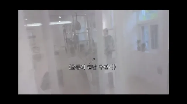 이해리 씨는 뒤로 묶은 머리가 거의 풀어진 채 매트에 쓰러져 있었다. 그는 격앙된 목소리로 “야, 연예인들 운동샷 올리는 거 있지. 그거 다 뻥이야. 이게 현실이라고”라고 소리쳤다.