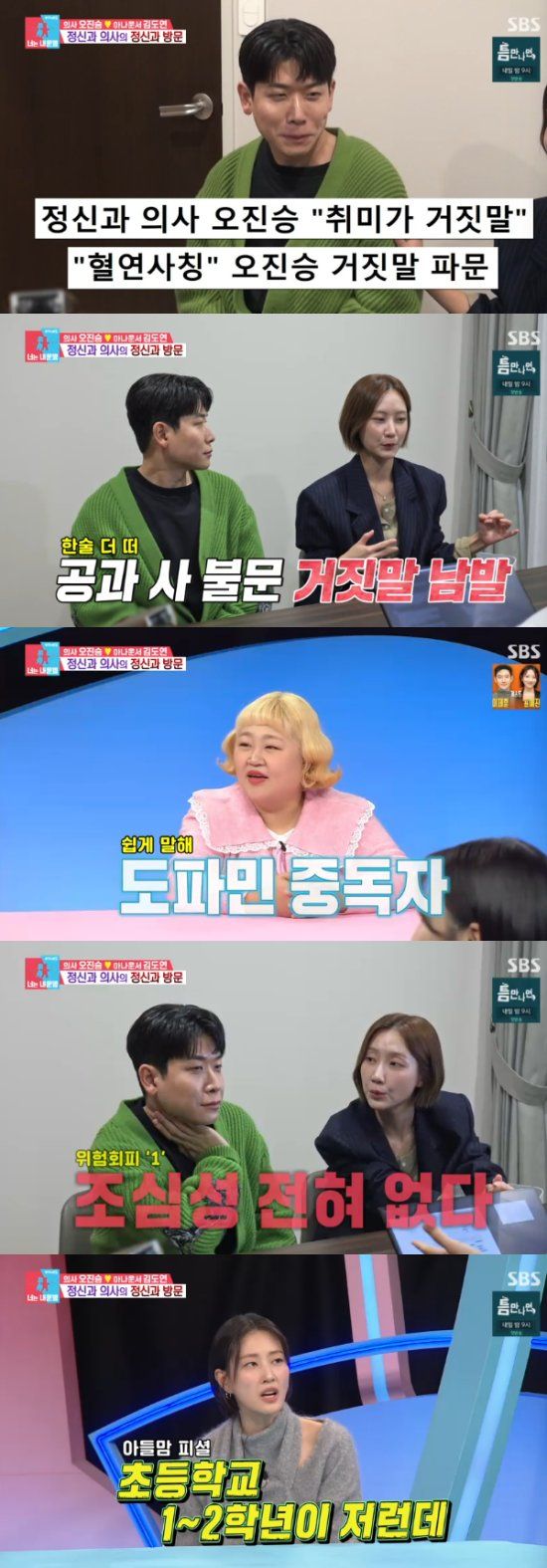 그리고 이날 오진승♥김도연 부부가 정신과를 찾아 의아함을 자아냈다. 오진승은 "우리 부부 사이에서 한 번쯤은 필요한 것 같다. 그리고 나는 부부 상담 전문이 아니니까"라고 찾은 이유를 전했다.