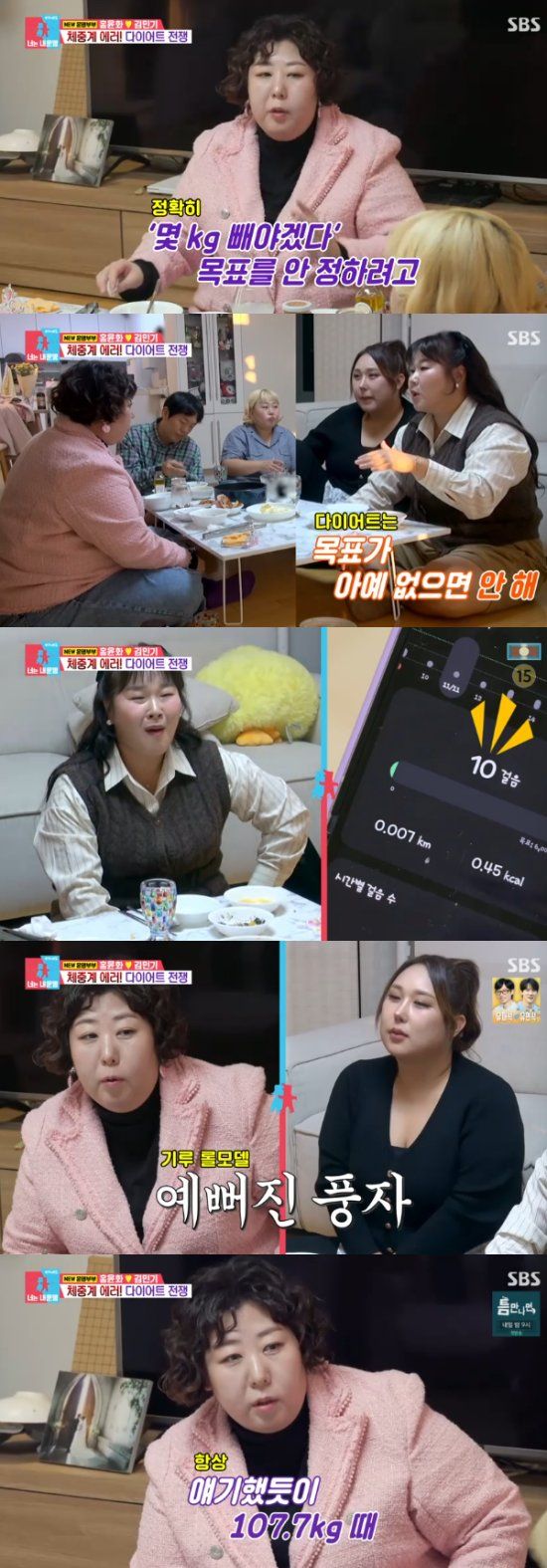 이에 김민경은 "근데 다이어트에 목표가 없으면 아예 안 된다"고 조언했고, 풍자는 신기루의 하루동안의 걸음걸이를 확인할 수 있는 어플을 확인하면서 "하루에 10걸음은 너무한거 아니냐"며 놀랐다.