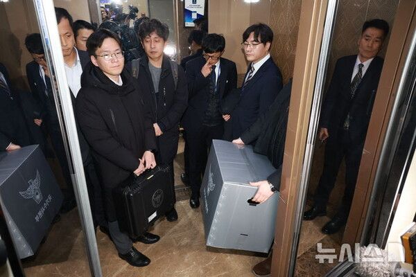 압수수색 종료 이후 수사관 4명은 회색 포렌식 장비 박스 등을 들고 엘리베이터를 통해 이동했으며, PC 파일 등 관련 자료를 확보한 것으로 알려졌다.