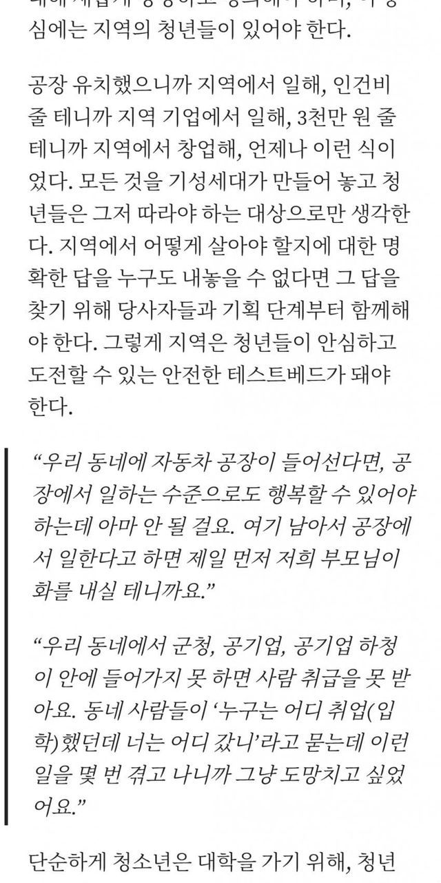 3. 자기 동네에 취업해도 청년들을 최저임금 주면서 뼛속까지 부려먹음