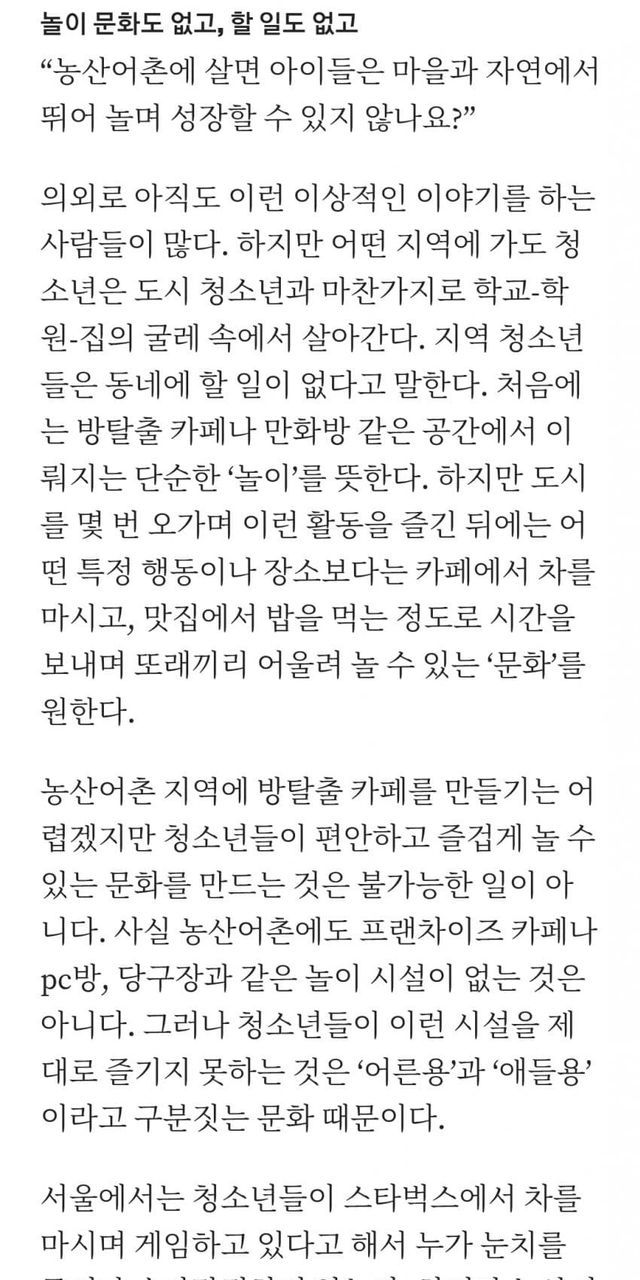1. 청소년들이 놀 곳이 없고, 무리지어 다니면 주민들한테 한 소리 들음