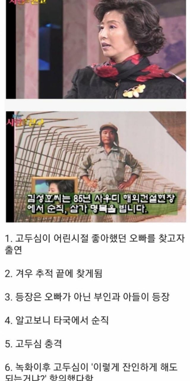 슬픔을 강조하기 위해 찾으려는 인물이 이미 죽었다는걸 미리 언질하지 않은채 만날것처럼 연출했다고함