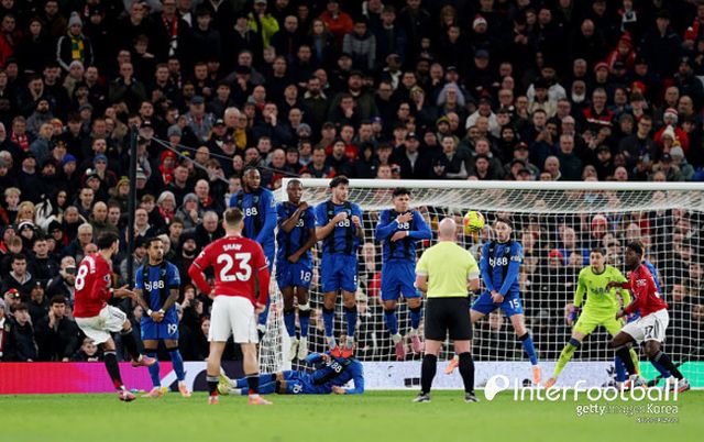 본머스가 빠르게 경기를 뒤집었다. 후반 5분 역습 상황에서 카세미루가 태버니어를 막는 과정에서 무리한 태클로 옐로카드를 받았고 프리킥이 선언됐다. 키커로 나선 태버니어의 슈팅이 그대로 맨유 골문으로 들어갔다.